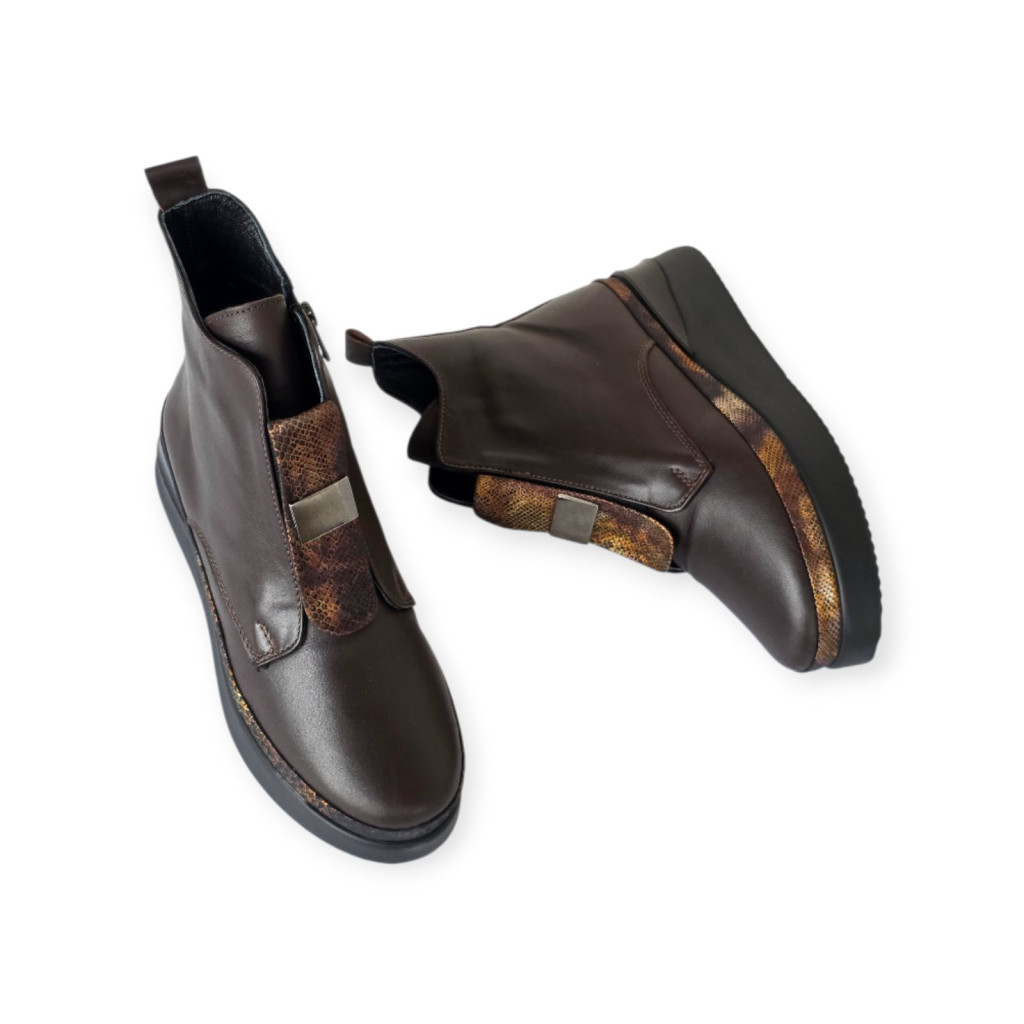 A Tutto Bene Scarpe bokacsizma a letisztult elegancia és a mindennapi kényelem tökéletes kombinációja. A matt bőr klasszikus, időtálló megjelenést biztosít, amely könnyedén párosítható elegáns és hétköznapi öltözékekhez is. A könnyített, emelt talp modern karaktert kölcsönöz, miközben extra stabilitást és komfortot nyújt. A belül zippzáras fazon praktikus és gyors viseletet garantál, ideális választás azoknak, akik egyszerre keresik a kényelmet és a stílust.