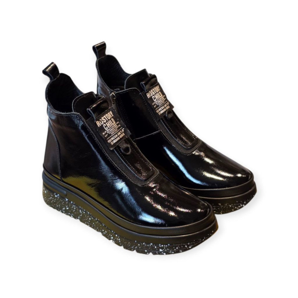 A Tutto Bene Scarpe bokacsizma a modern nő gardróbjának nélkülözhetetlen darabja: egyszerre elegáns és praktikus. A lakk felület kifinomult, mégis könnyed megjelenést biztosít, amely tökéletesen illik mind hétköznapi szettekhez. A könnyített, emelt talp nem csupán divatos részlet, hanem extra kényelmet és stabilitást is nyújt, miközben finoman megnyújtja a láb vonalát. A kialakításnak köszönhetően a cipő gyorsan és egyszerűen felvehető, így ideális választás a rohanós hétköznapokra is. Belül zippzáras fazon.