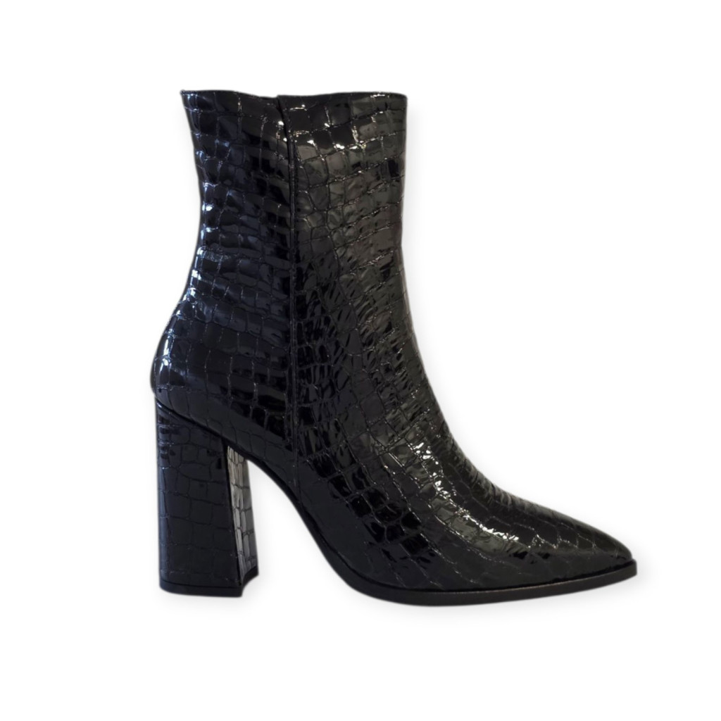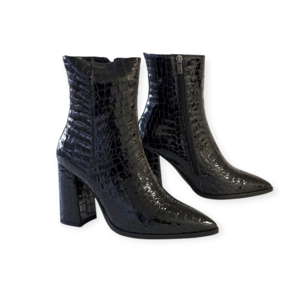 A Tutto Bene hegyesorrú bokacsizma a nőiesség megtestesítője: elegáns, kifinomult és szolidan szexi. Emelt sarka karcsúsítja a sziluettet, míg kecses formája méltóságot és magabiztosságot sugároz minden lépésben. Praktikus cipzárja könnyű fel- és lehúzást biztosít, így a luxus és a kényelem egyszerre válik mindennapi élménnyé.