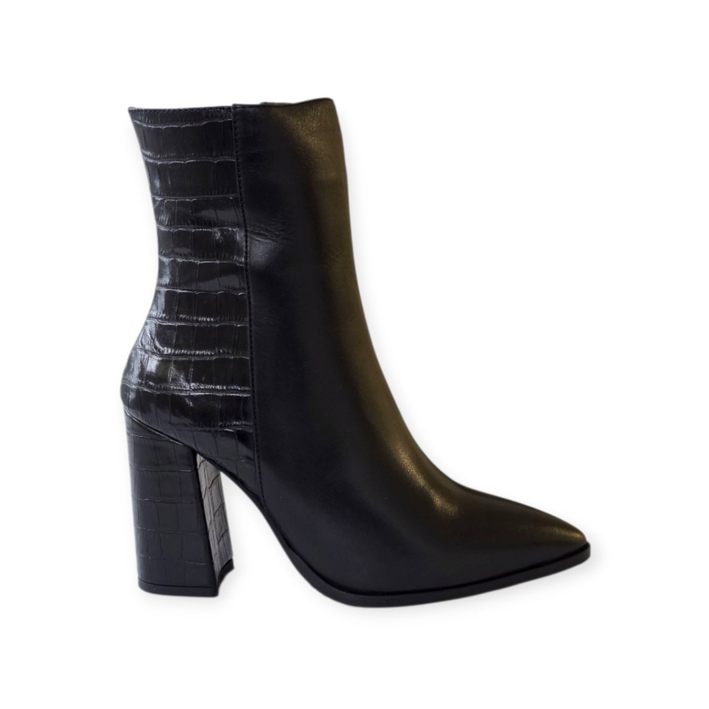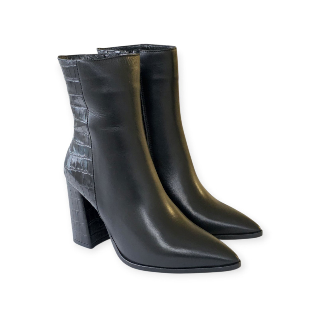 A Tutto Bene hegyesorrú bokacsizma a nőiesség megtestesítője: elegáns, kifinomult és szolidan szexi. Emelt sarka karcsúsítja a sziluettet, míg kecses formája méltóságot és magabiztosságot sugároz minden lépésben. Praktikus cipzárja könnyű fel- és lehúzást biztosít, így a luxus és a kényelem egyszerre válik mindennapi élménnyé.