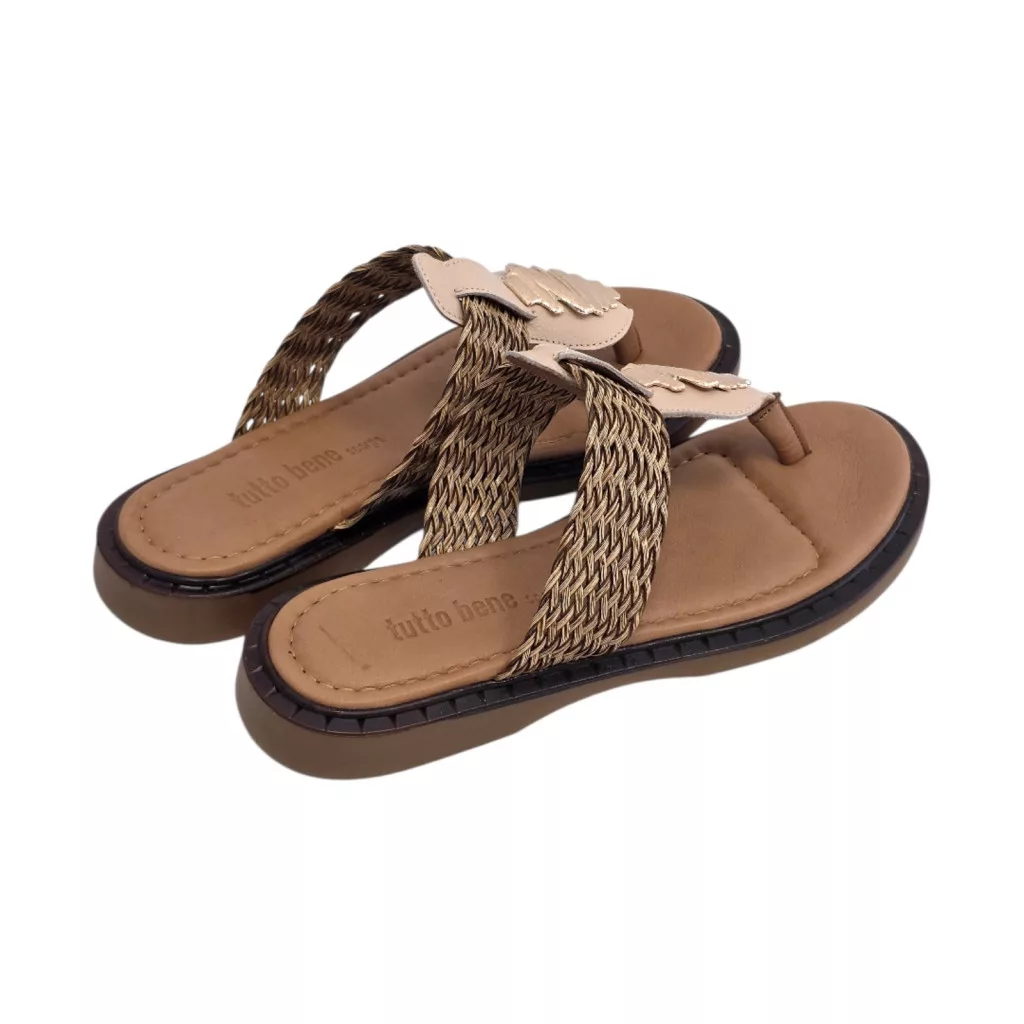 A Tutto Bene Scarpe lapos papucsa a nyári könnyedség és a kifinomult részletek találkozása. A modell egyik legnagyobb előnye könnyed talpszerkezet, amely minden lépésnél együtt mozog a láb természetes mozgásával – ezáltal nemcsak kényelmes, de kellemesen puha járásélményt is kínál, akár egész napos viselésre is. A felsőrész különleges egyediségge teszi igazán figyelemfelkeltővé: gondosan kidolgozott részletek nem harsányak, mégis egyedi, elegánsan játékossá teszik az összhatást. A természetes, puha bőr érintése és az ergonómikusan kialakított formavilág teszi teljessé ezt a modellt: olyan választás ez, amely nemcsak jól mutat, hanem valóban kényelmes is. A Tutto Bene Scarpe ezzel a papuccsal ismét bizonyítja, hogy a hétköznapi viselet is lehet stílusos, egyedi és szerethető – minden nap.