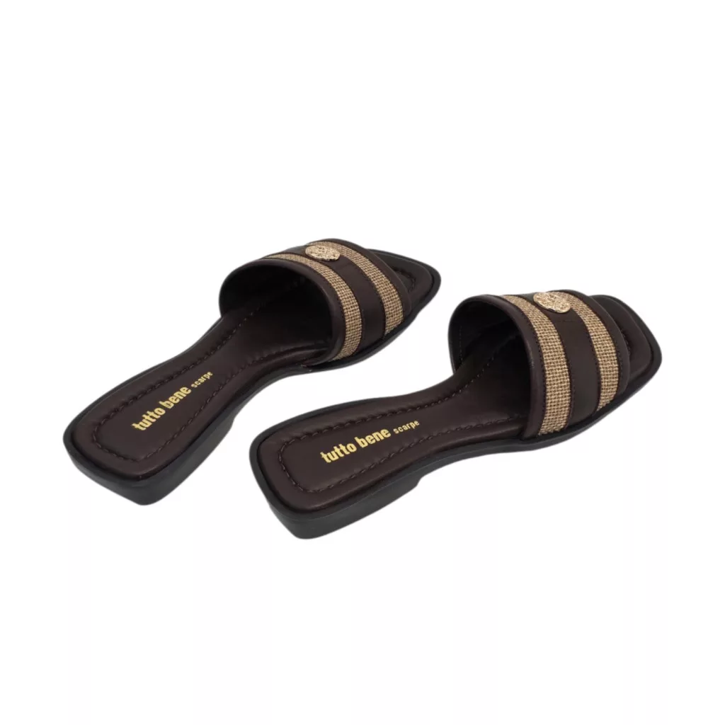 A Tutto Bene Scarpe lapos papucsa a nyári könnyedség és a kifinomult részletek találkozása. A modell egyik legnagyobb előnye könnyed talpszerkezet, amely minden lépésnél együtt mozog a láb természetes mozgásával – ezáltal nemcsak kényelmes, de kellemesen puha járásélményt is kínál, akár egész napos viselésre is. A felsőrész különleges egyediségge teszi igazán figyelemfelkeltővé: gondosan kidolgozott részletek nem harsányak, mégis egyedi, elegánsan játékossá teszik az összhatást. A természetes, puha bőr érintése és az ergonómikusan kialakított formavilág teszi teljessé ezt a modellt: olyan választás ez, amely nemcsak jól mutat, hanem valóban kényelmes is. A Tutto Bene Scarpe ezzel a papuccsal ismét bizonyítja, hogy a hétköznapi viselet is lehet stílusos, egyedi és szerethető – minden nap.