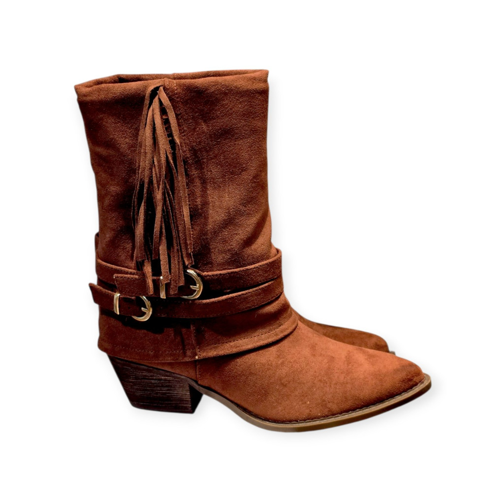 A női western csizma idén újra a divat középpontjába került – és nem véletlenül. Ez a különleges darab a modern trendek és a klasszikus vadnyugati stílus tökéletes harmóniáját képviseli. Egyedi szabása, díszített varrásai és karcsúsított sziluettje igazán trendi és nőies megjelenést biztosít, miközben minden lépésben magabiztosságot sugároz. A kiváló minőségű anyag garantálja a tartósságot és a kényelmet, így a csizma nemcsak stílusos, hanem praktikus választás is a mindennapokra. A középmagas sarok elegánsan nyújtja a lábat, tökéletesen illeszkedve a hölgyek alakjához.