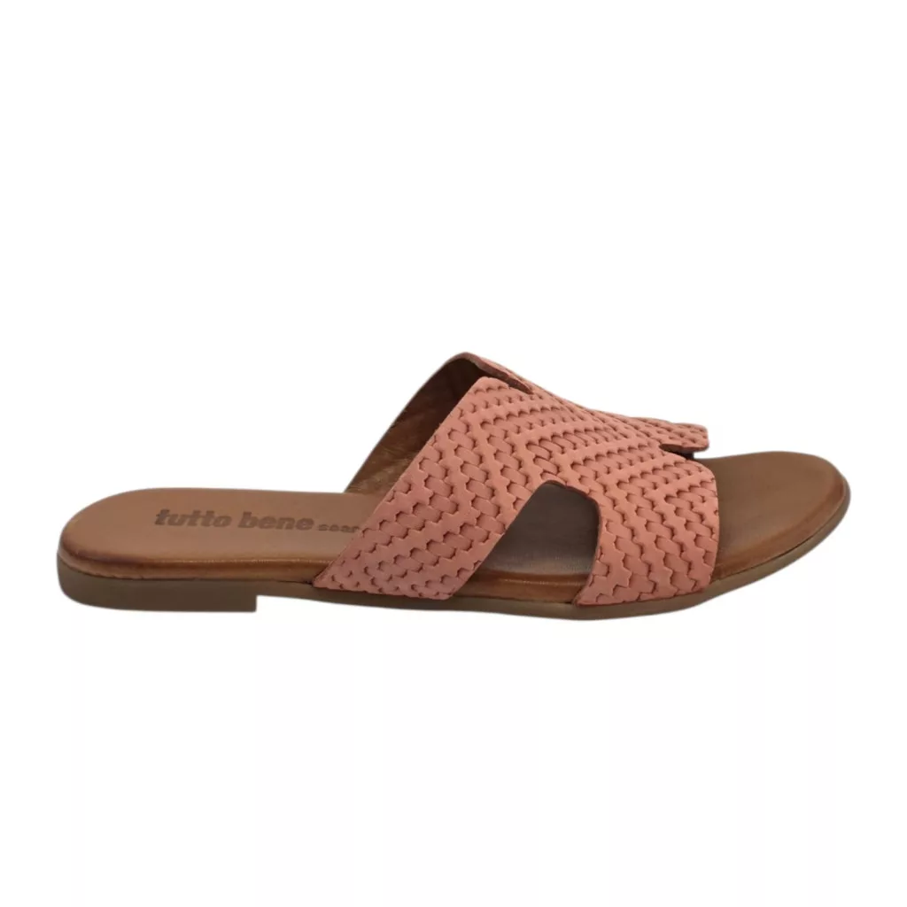 A Tutto Bene Scarpe lapos papucsa a nyári könnyedség és a kifinomult részletek találkozása. A modell egyik legnagyobb előnye könnyed talpszerkezet, amely minden lépésnél együtt mozog a láb természetes mozgásával – ezáltal nemcsak kényelmes, de kellemesen puha járásélményt is kínál, akár egész napos viselésre is. A felsőrész különleges egyediségge teszi igazán figyelemfelkeltővé: gondosan kidolgozott részletek nem harsányak, mégis egyedi, elegánsan játékossá teszik az összhatást. A természetes, puha bőr érintése és az ergonómikusan kialakított formavilág teszi teljessé ezt a modellt: olyan választás ez, amely nemcsak jól mutat, hanem valóban kényelmes is. A Tutto Bene Scarpe ezzel a papuccsal ismét bizonyítja, hogy a hétköznapi viselet is lehet stílusos, egyedi és szerethető – minden nap.