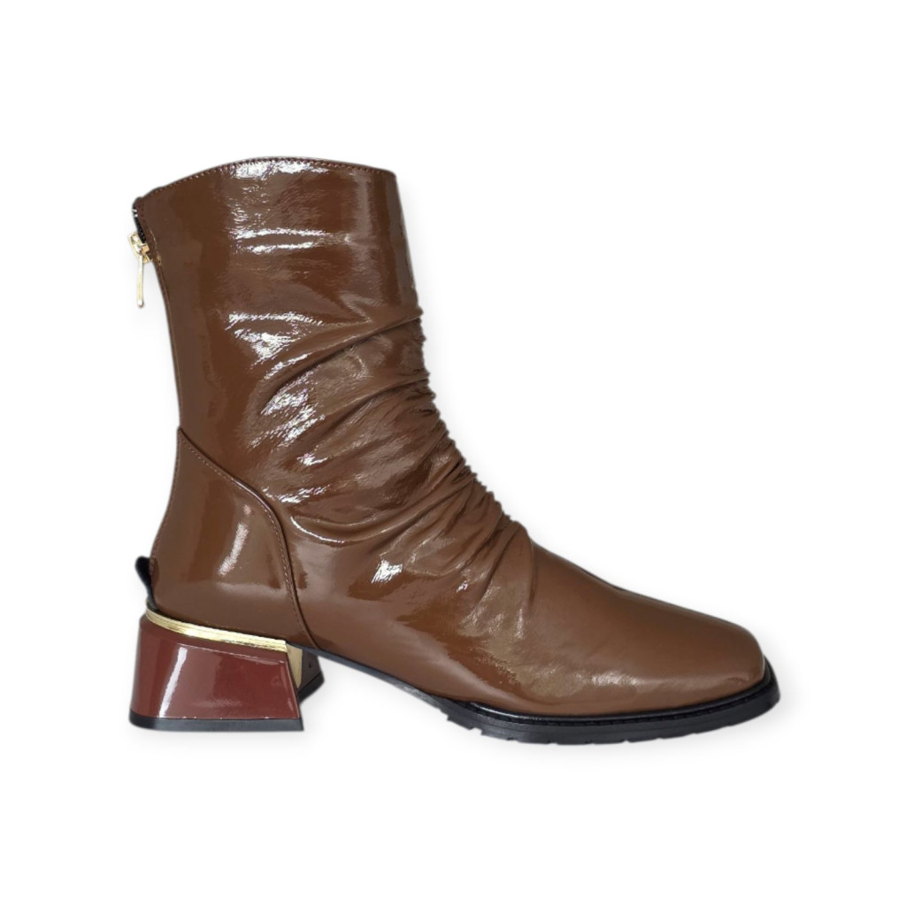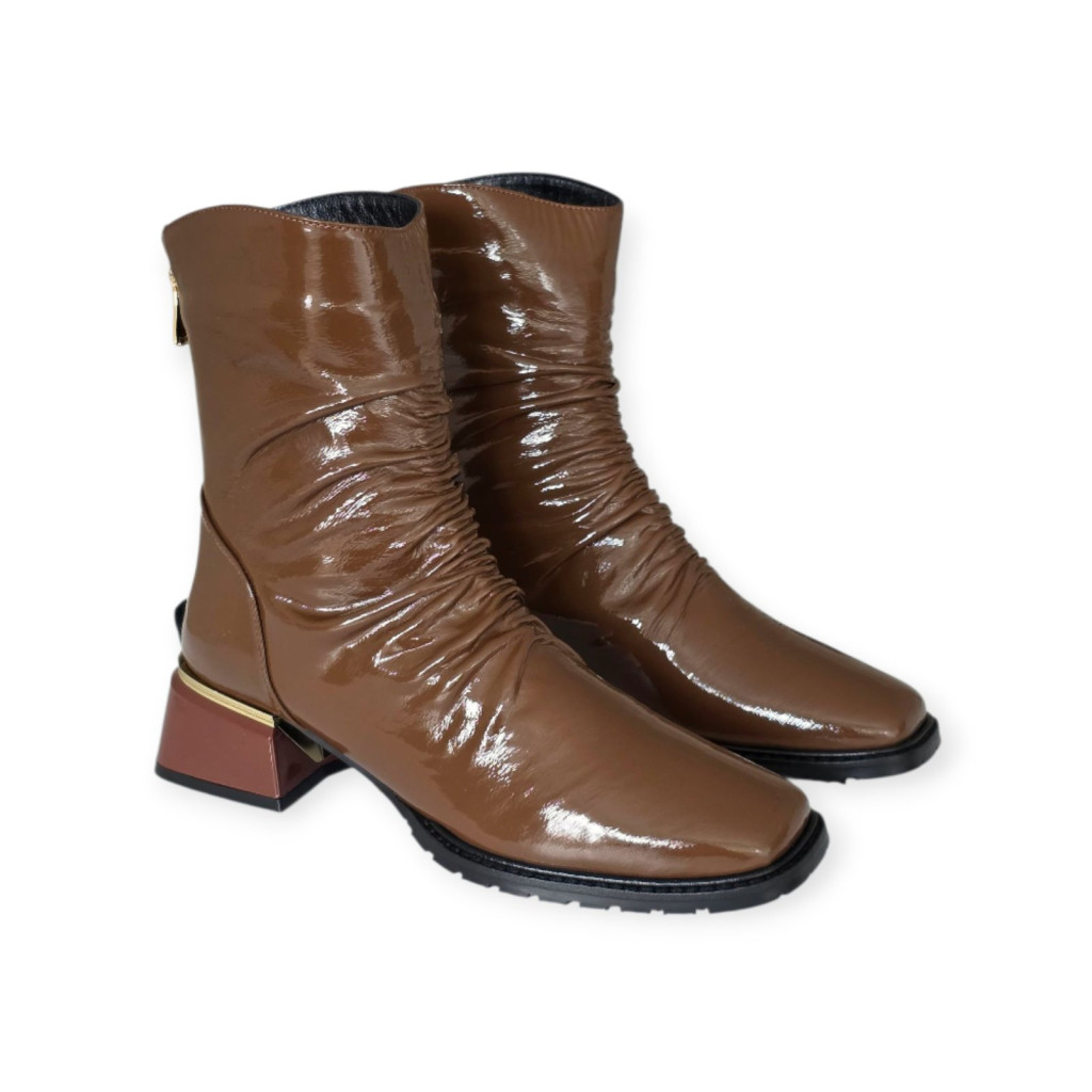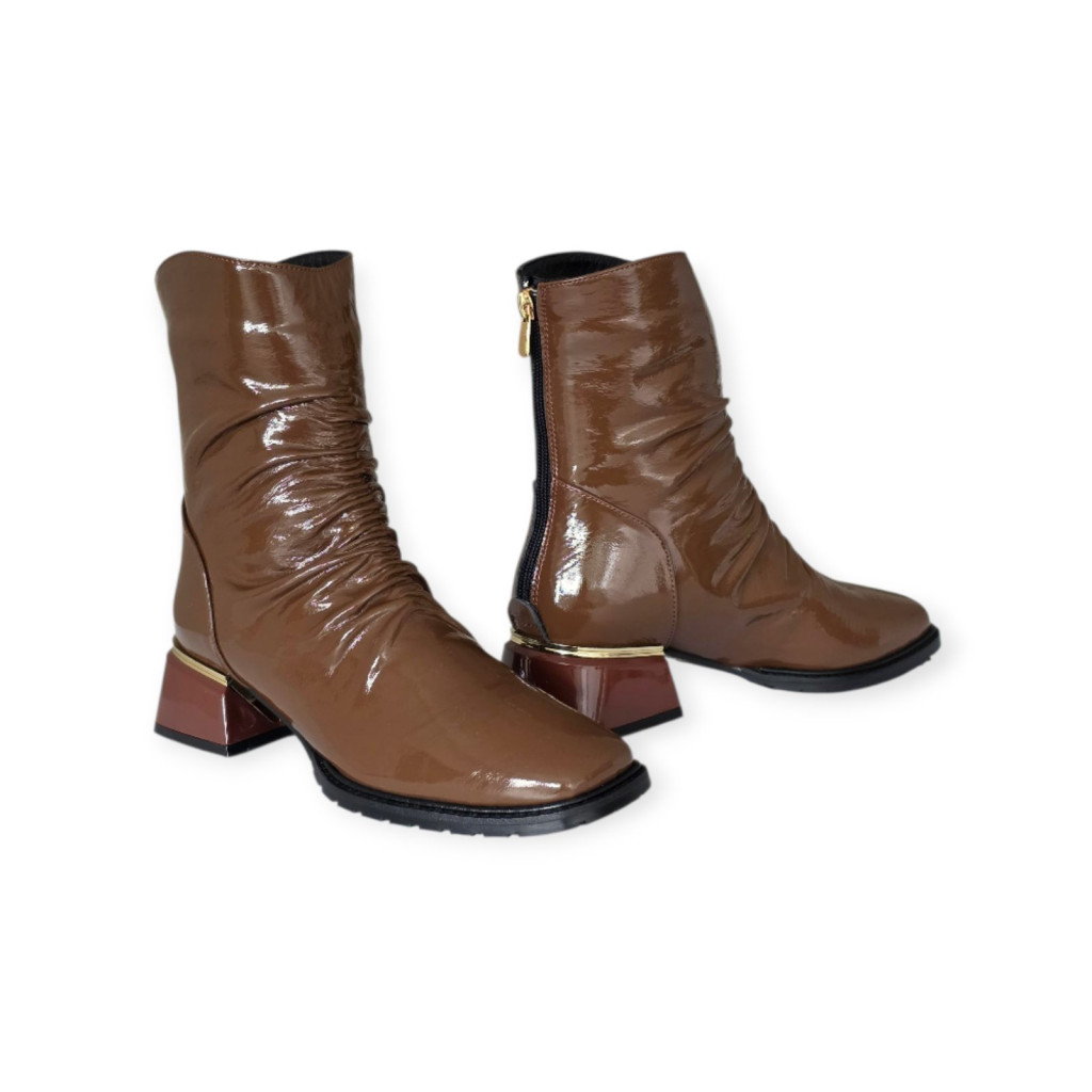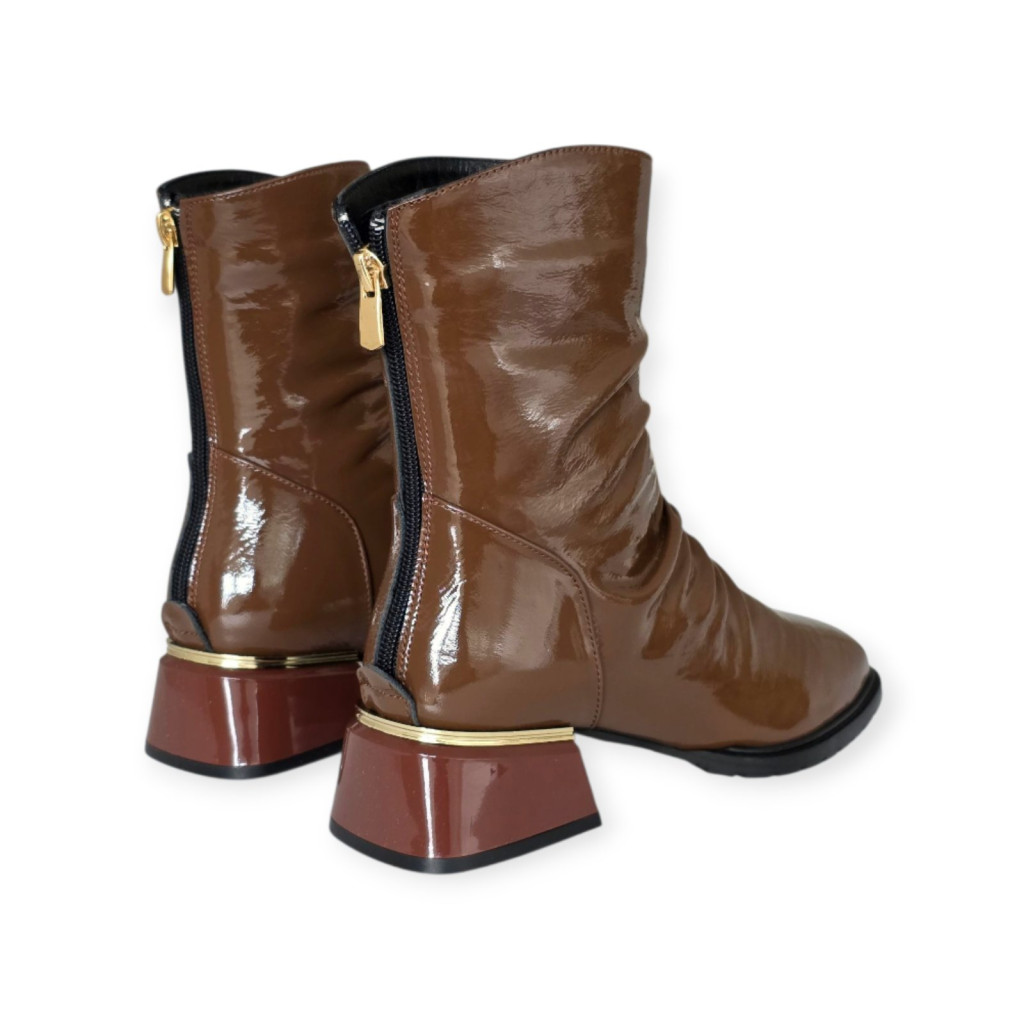 Via Roma 306 225 barna gyűrt lakk bokacsizma