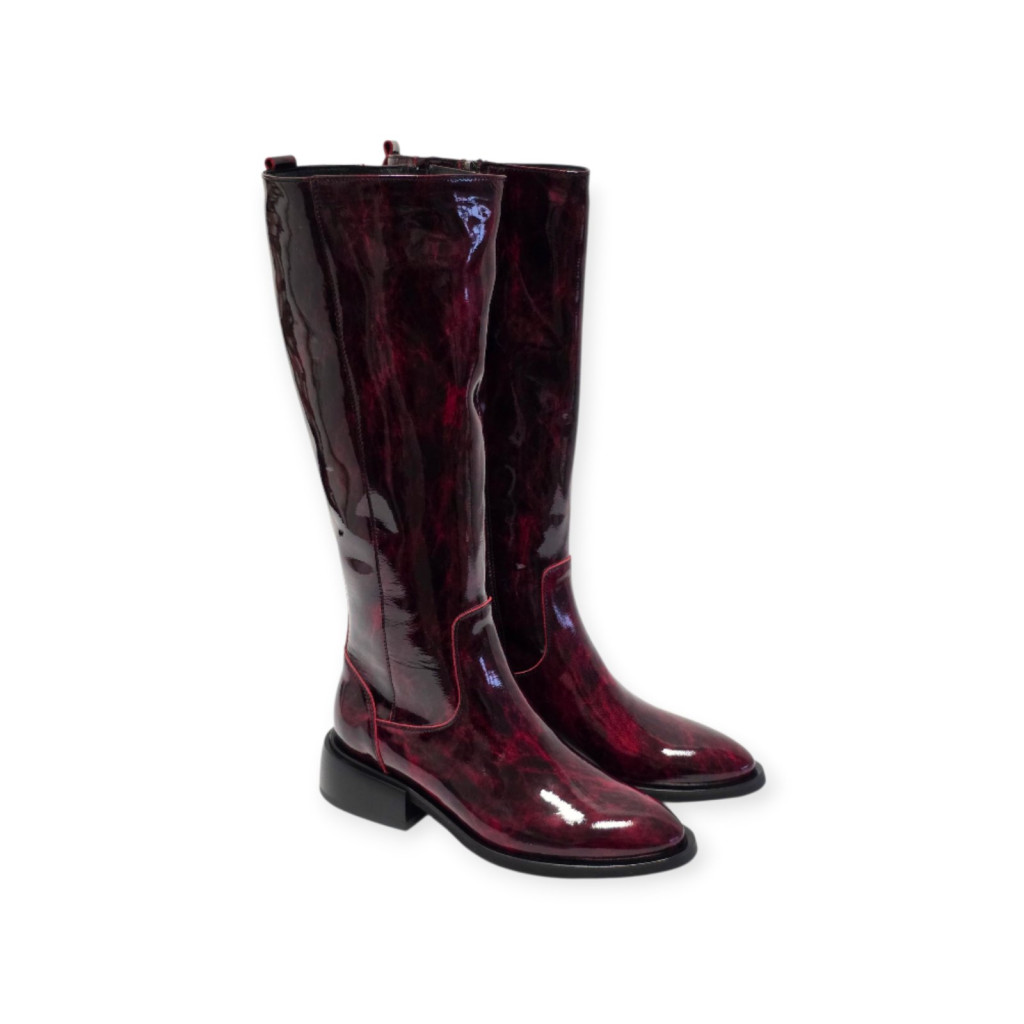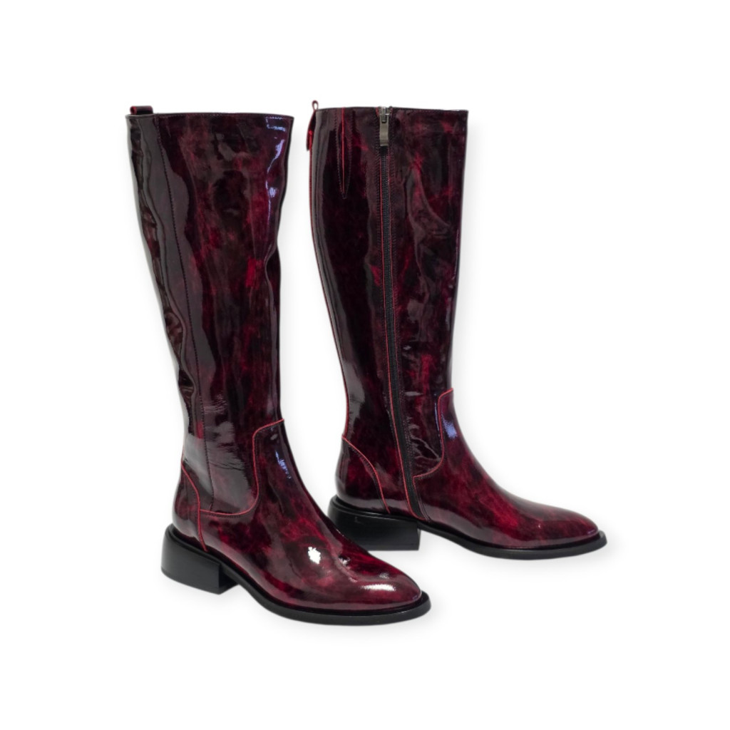 A Via Roma bordó lakk hosszúszárú csizma a kifinomult elegancia és a női magabiztosság tökéletes megtestesítője. Fényes, bordó árnyalata különleges fényt ad minden megjelenésnek, miközben a kecses, hosszúszárú fazon finoman hangsúlyozza a nőies vonalakat. Ez a modell limitált darabszámban elérhető, így minden pár egyedi – akárcsak a hölgy, aki viseli. A magas minőségű lakk bőr prémium érzetet és időtálló eleganciát biztosít, míg a kényelmes talpkialakítás gondoskodik arról, hogy a stílus soha ne menjen a komfort rovására. Viselheted elegáns ruhával, kabáttal vagy akár egy klasszikus nadrággal – ez a csizma minden szettet különlegessé és nőiessé varázsol. Egy darab, amely nemcsak öltöztet, hanem magával ragadó kisugárzást ad.