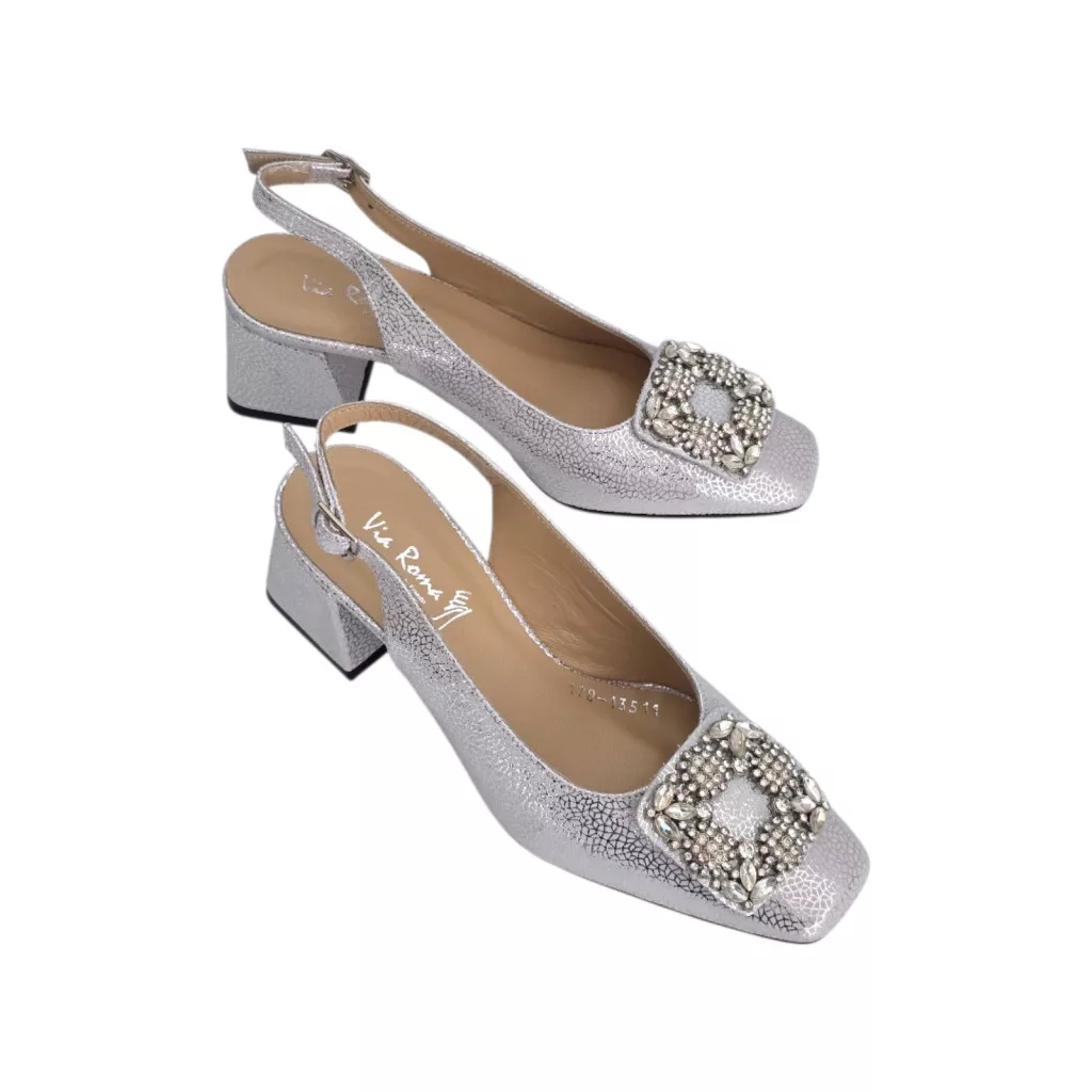 Via Roma 178 13511 ezüst hátul nyitott cipő