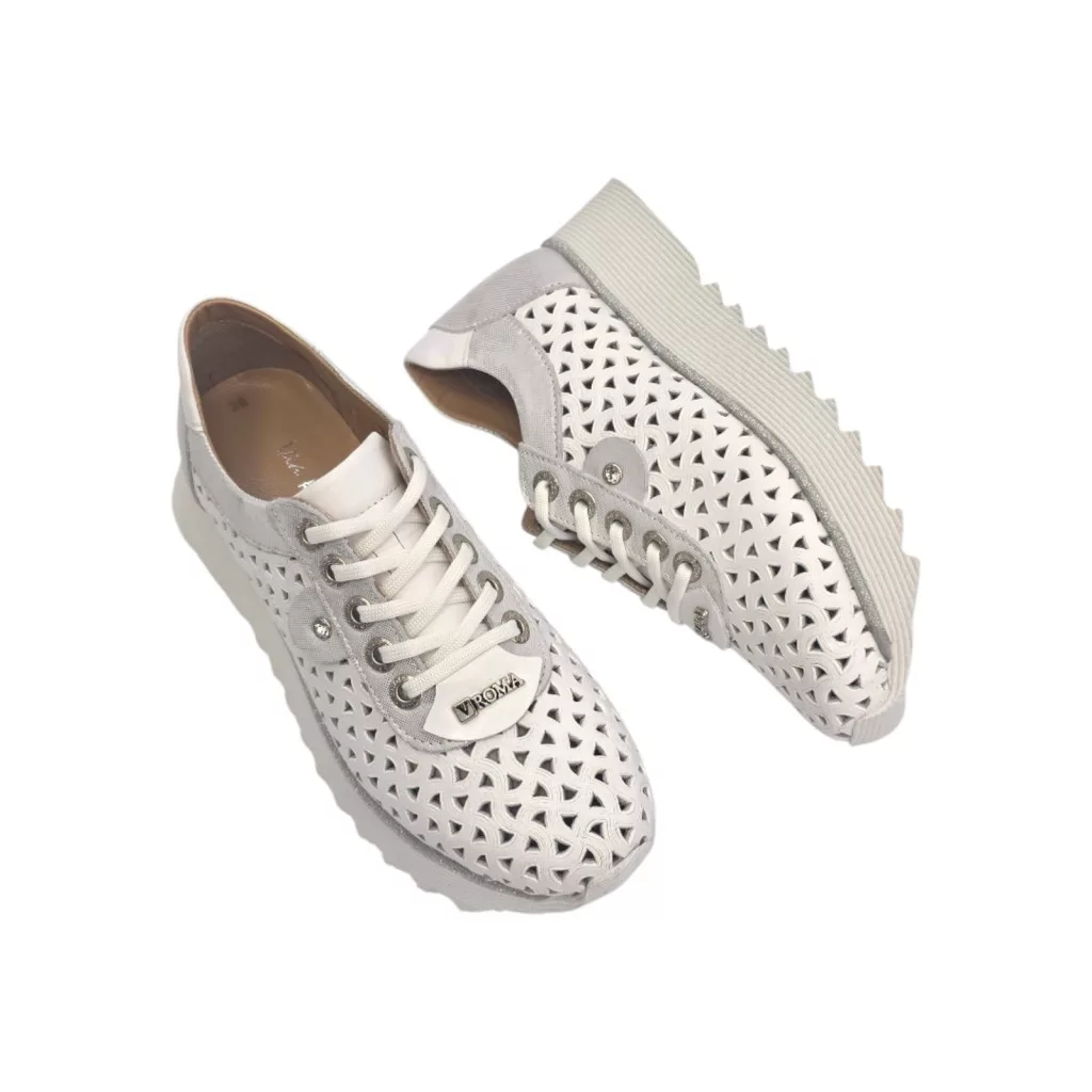 A Via Roma 021 fűzős változata azoknak készült, akik szeretik, ha a stílus nemcsak látszik, hanem érezhető is. A klasszikus fűzős kialakítás tökéletes illeszkedést és stabil tartást biztosít, miközben az újratervezett forma modern, határozott megjelenést kölcsönöz. A precízen kidolgozott részletek és a prémium anyaghasználat azonnal kiemelik ezt a modellt a hétköznapi cipők közül. A fűzős szerkezet lehetővé teszi az egyéni beállítást, így a 021 modell egész nap kényelmes viselet marad, akár hosszú városi séták, akár aktív napok során. Ez a változat a Via Roma karakteresebb arca: erőteljesebb vonalak, határozott tartás és időtálló dizájn találkozik benne. Könnyedén kombinálható elegánsabb és casual szettekkel is, így sokoldalú választás azoknak a nőknek, akik nem akarnak választani kényelem és megjelenés között.