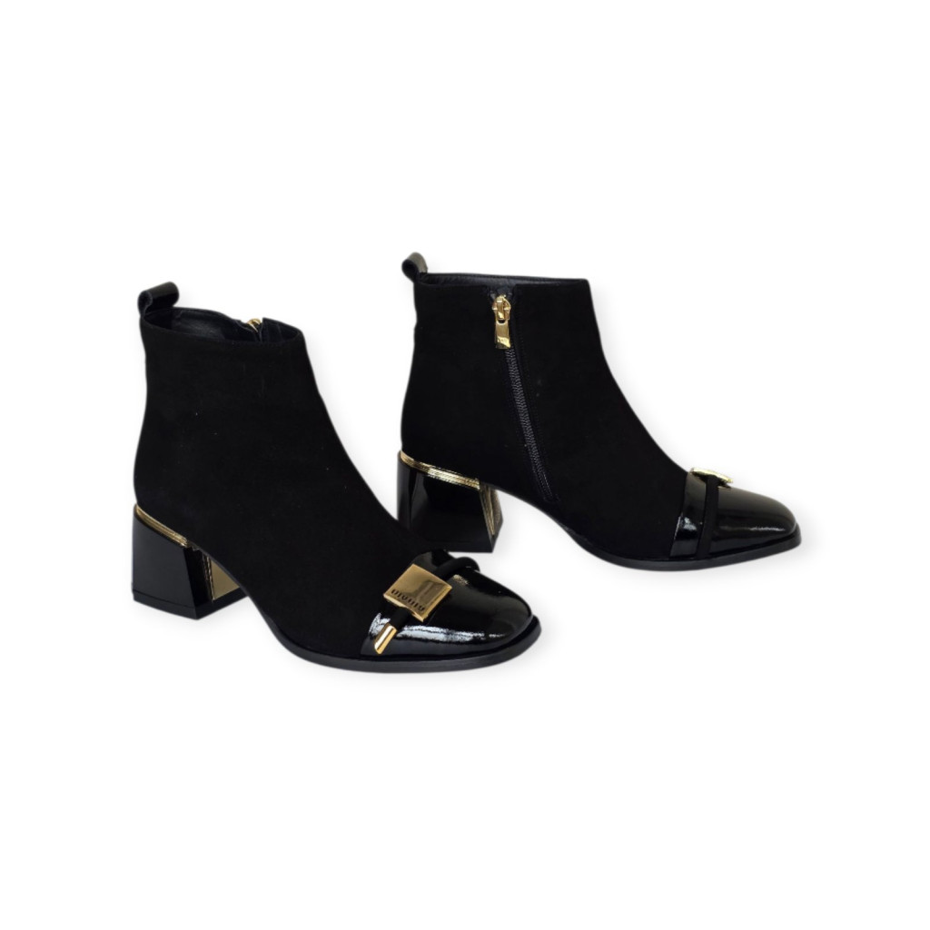 A stabil, ízlésesen kialakított sarok optikailag nyújtja a lábat, kecses tartást ad, ugyanakkor kényelmes viseletet biztosít a mindennapokban is. A puha belső bélés gondoskodik a komfortérzetről, míg a tartós, csúszásbiztos talp megbízható társsá teszi ezeket a bokacsizmákat városi sétákon, munkában vagy esti alkalmak során.