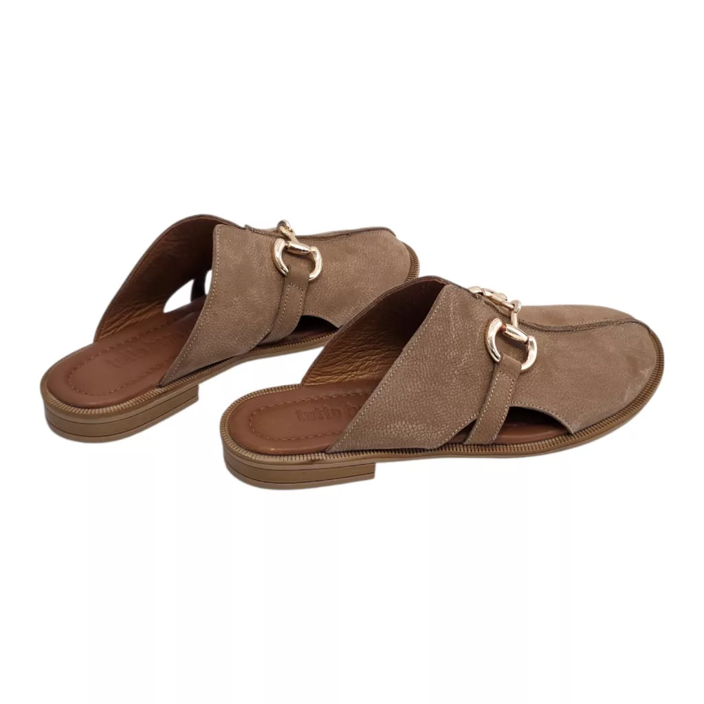 A Tutto Bene Scarpe lapos papucsa a nyári könnyedség és a kifinomult részletek találkozása. A modell egyik legnagyobb előnye könnyed talpszerkezet, amely minden lépésnél együtt mozog a láb természetes mozgásával – ezáltal nemcsak kényelmes, de kellemesen puha járásélményt is kínál, akár egész napos viselésre is. A felsőrész különleges egyediségge teszi igazán figyelemfelkeltővé: gondosan kidolgozott részletek nem harsányak, mégis egyedi, elegánsan játékossá teszik az összhatást. A természetes, puha bőr érintése és az ergonómikusan kialakított formavilág teszi teljessé ezt a modellt: olyan választás ez, amely nemcsak jól mutat, hanem valóban kényelmes is. A Tutto Bene Scarpe ezzel a papuccsal ismét bizonyítja, hogy a hétköznapi viselet is lehet stílusos, egyedi és szerethető – minden nap.