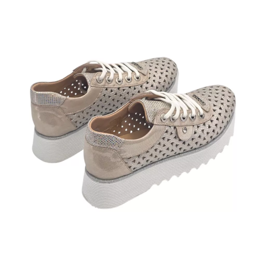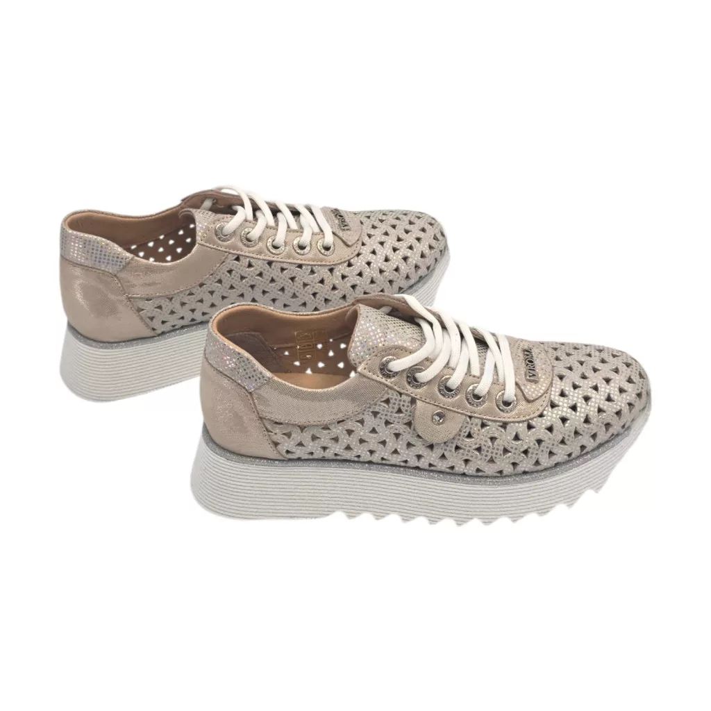 A Via Roma 021 fűzős változata azoknak készült, akik szeretik, ha a stílus nemcsak látszik, hanem érezhető is. A klasszikus fűzős kialakítás tökéletes illeszkedést és stabil tartást biztosít, miközben az újratervezett forma modern, határozott megjelenést kölcsönöz. A precízen kidolgozott részletek és a prémium anyaghasználat azonnal kiemelik ezt a modellt a hétköznapi cipők közül. A fűzős szerkezet lehetővé teszi az egyéni beállítást, így a 021 modell egész nap kényelmes viselet marad, akár hosszú városi séták, akár aktív napok során. Ez a változat a Via Roma karakteresebb arca: erőteljesebb vonalak, határozott tartás és időtálló dizájn találkozik benne. Könnyedén kombinálható elegánsabb és casual szettekkel is, így sokoldalú választás azoknak a nőknek, akik nem akarnak választani kényelem és megjelenés között.